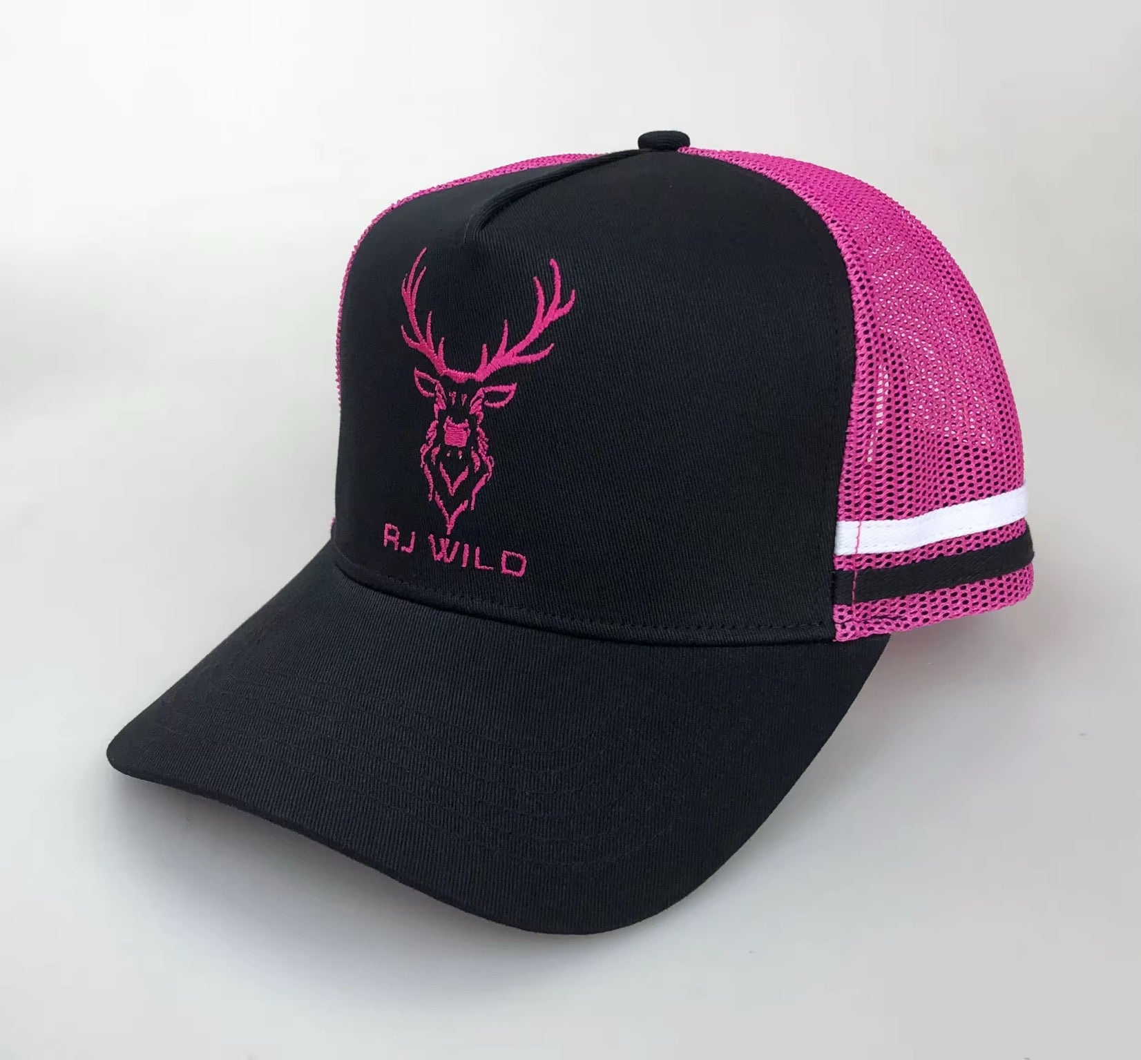 Introducing the RJ WILD trucker cap — where bold style meets ultimate comfort! Designed for the free spirits and adventurers, this cap features a striking pink and black color combo that’s perfect for any outfit.